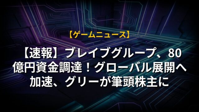 【速報】ブレイブグループ、80億円資金調達!グローバル展開へ加速、グリーが筆頭株主に