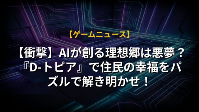 【衝撃】AIが創る理想郷は悪夢?『D-トピア』で住民の幸福をパズルで解き明かせ!