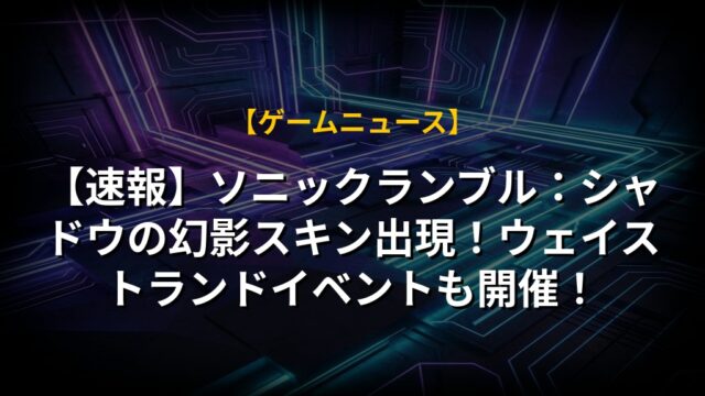 【速報】ソニックランブル:シャドウの幻影スキン出現!ウェイストランドイベントも開催!