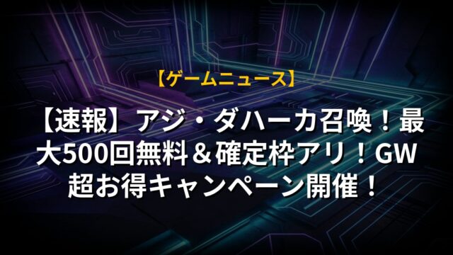【速報】アジ・ダハーカ召喚!最大500回無料&確定枠アリ!GW超お得キャンペーン開催!