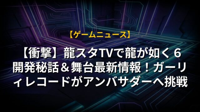 【衝撃】龍スタTVで龍が如く6開発秘話&舞台最新情報!ガーリィレコードがアンバサダーへ挑戦