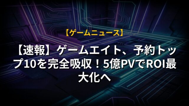 【速報】ゲームエイト、予約トップ10を完全吸収!5億PVでROI最大化へ