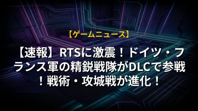【速報】RTSに激震!ドイツ・フランス軍の精鋭戦隊がDLCで参戦!戦術・攻城戦が進化!