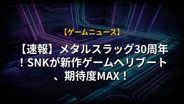 【速報】メタルスラッグ30周年!SNKが新作ゲームへリブート、期待度MAX!