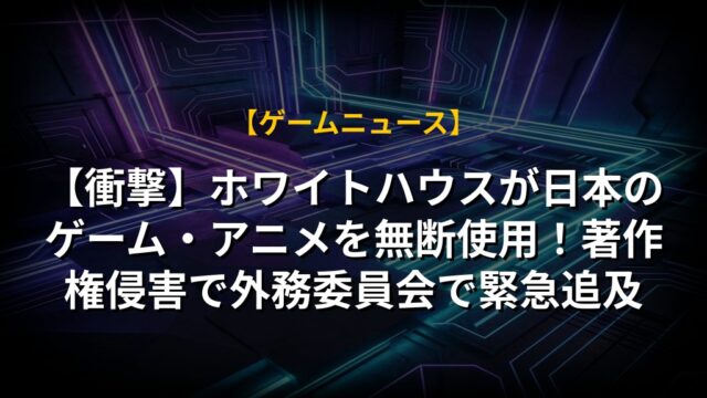 【衝撃】ホワイトハウスが日本のゲーム・アニメを無断使用!著作権侵害で外務委員会で緊急追及