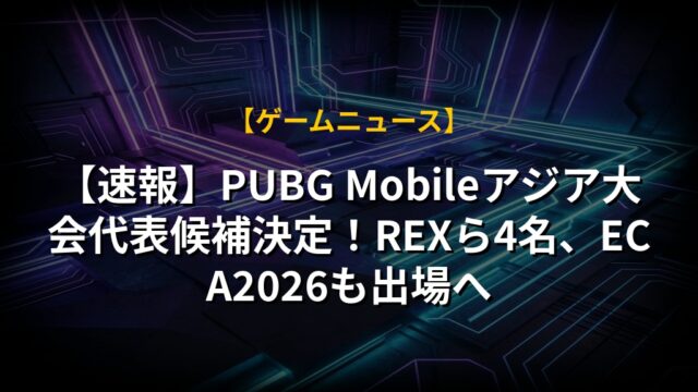 【速報】PUBG Mobileアジア大会代表候補決定!REXら4名、ECA2026も出場へ