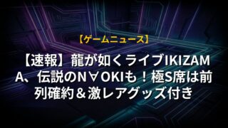 【速報】龍が如くライブIKIZAMA、伝説のN∀OKIも!極S席は前列確約&激レアグッズ付き