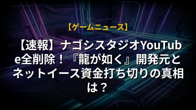 【速報】ナゴシスタジオYouTube全削除!『龍が如く』開発元とネットイース資金打ち切りの真相は?