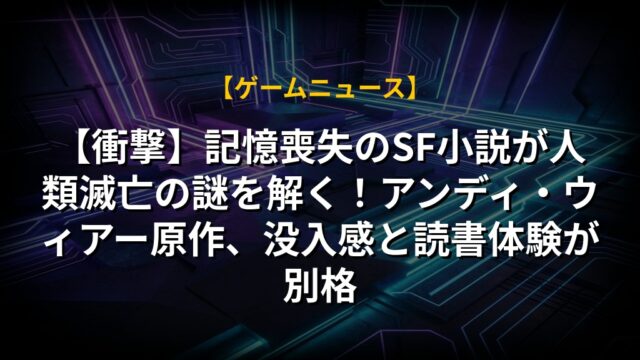 【衝撃】記憶喪失のSF小説が人類滅亡の謎を解く!アンディ・ウィアー原作、没入感と読書体験が別格