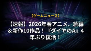 【速報】2026年春アニメ、続編&新作10作品!『ダイヤのA』4年ぶり復活!