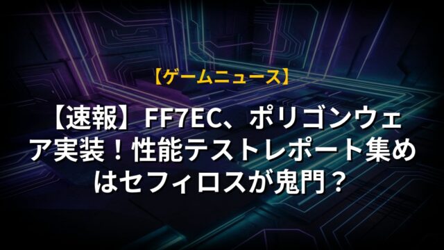 【速報】FF7EC、ポリゴンウェア実装!性能テストレポート集めはセフィロスが鬼門?