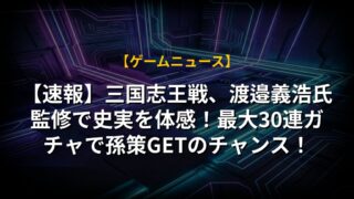 【速報】三国志王戦、渡邉義浩氏監修で史実を体感!最大30連ガチャで孫策GETのチャンス!