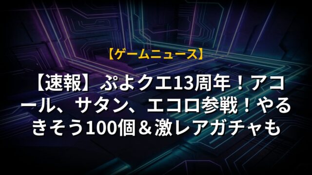 【速報】ぷよクエ13周年!アコール、サタン、エコロ参戦!やるきそう100個&激レアガチャも